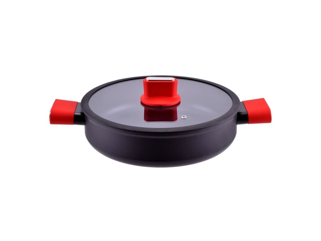 Hrnec nízký s nepřilnavým povrchem 28cm černý/červený Perfect Home