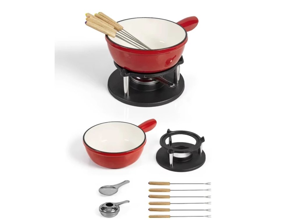Sada na fondue smaltovaná litina 1,8 l červená Perfect Home