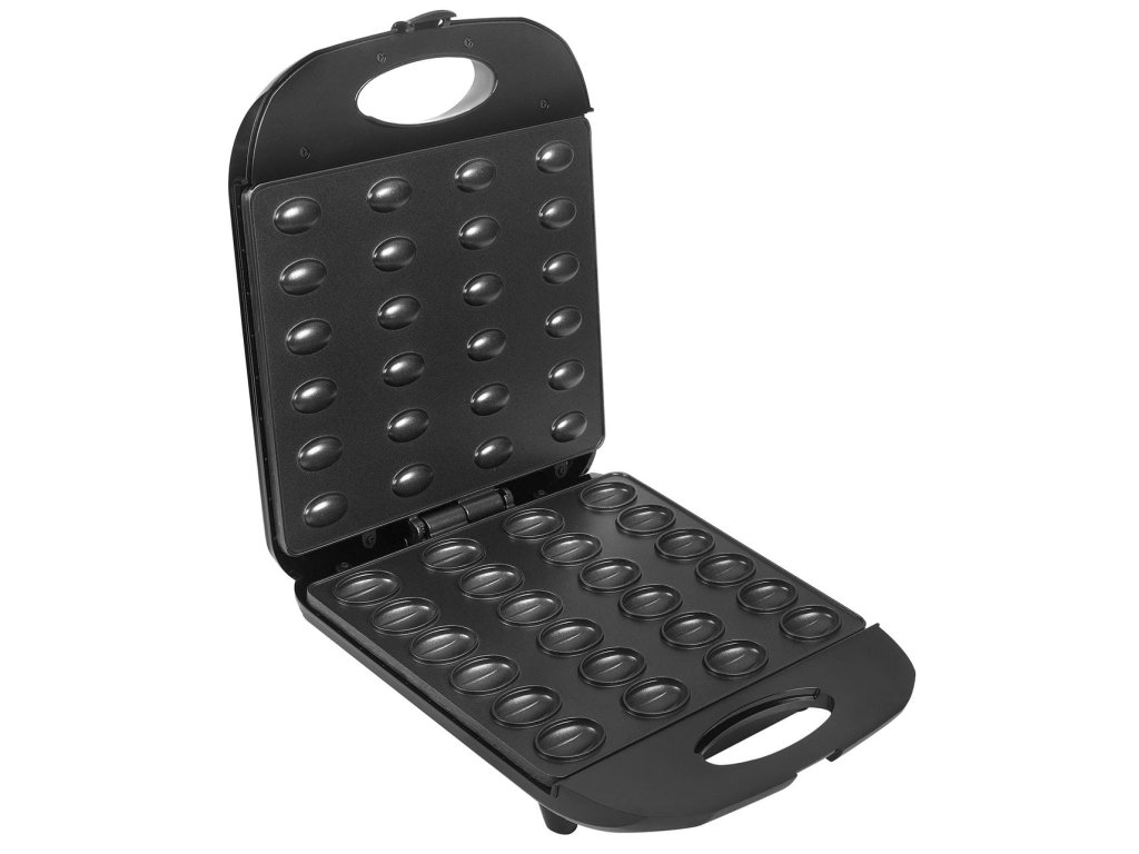 Praktický kuchyňský přístroj na pečení oříškových sušenek. Najednou připraví 24 polovin, rychlé nahřátí, nepřilnavé desky a snadné čištění. Ideální pro domácí sladké pochoutky.