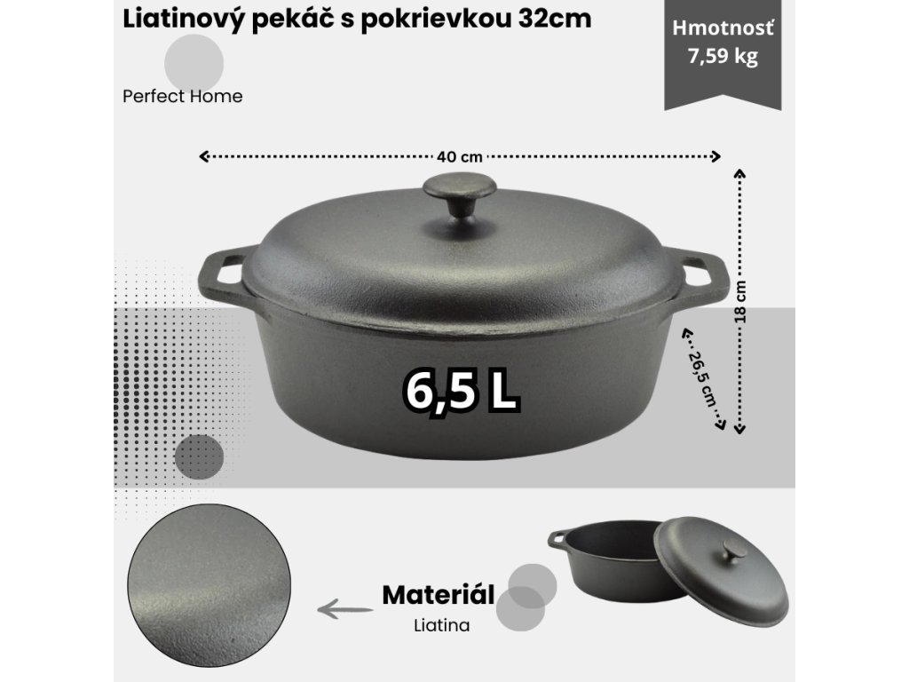 Litinový pekáč s poklicí 6,5l, 32cm Perfect Home