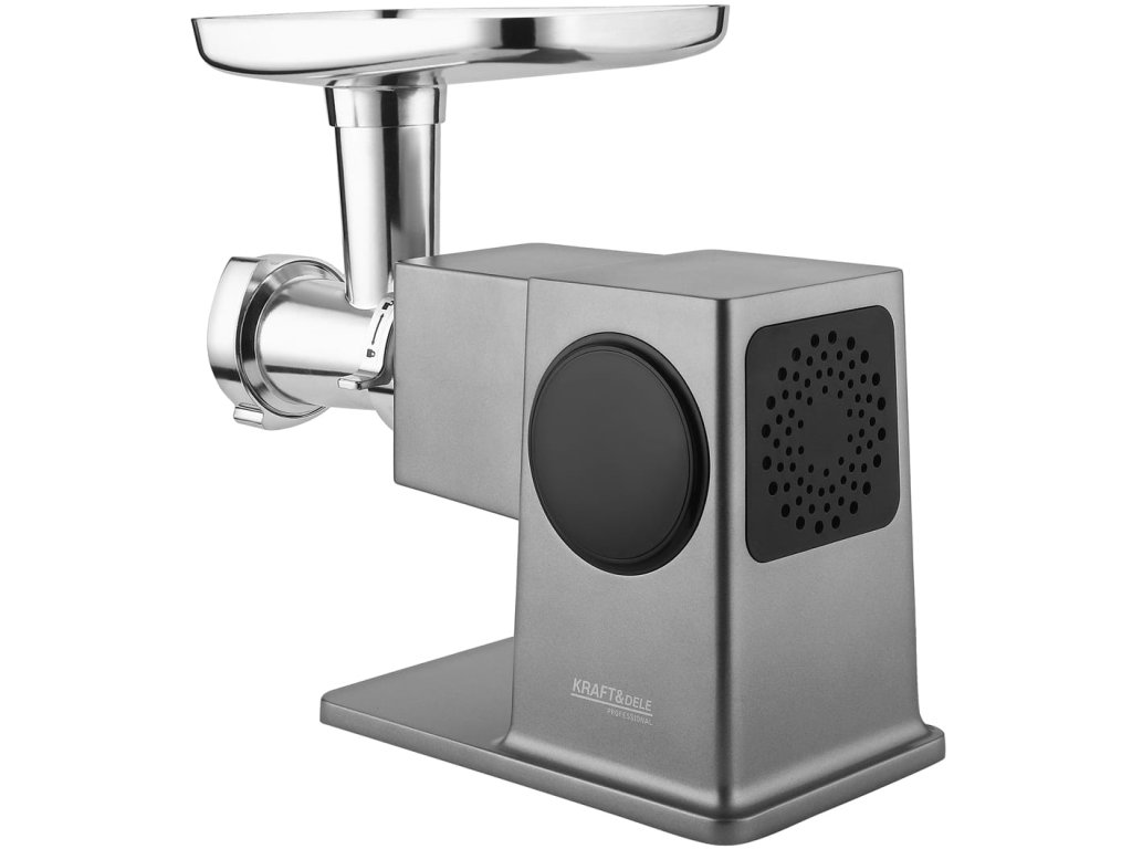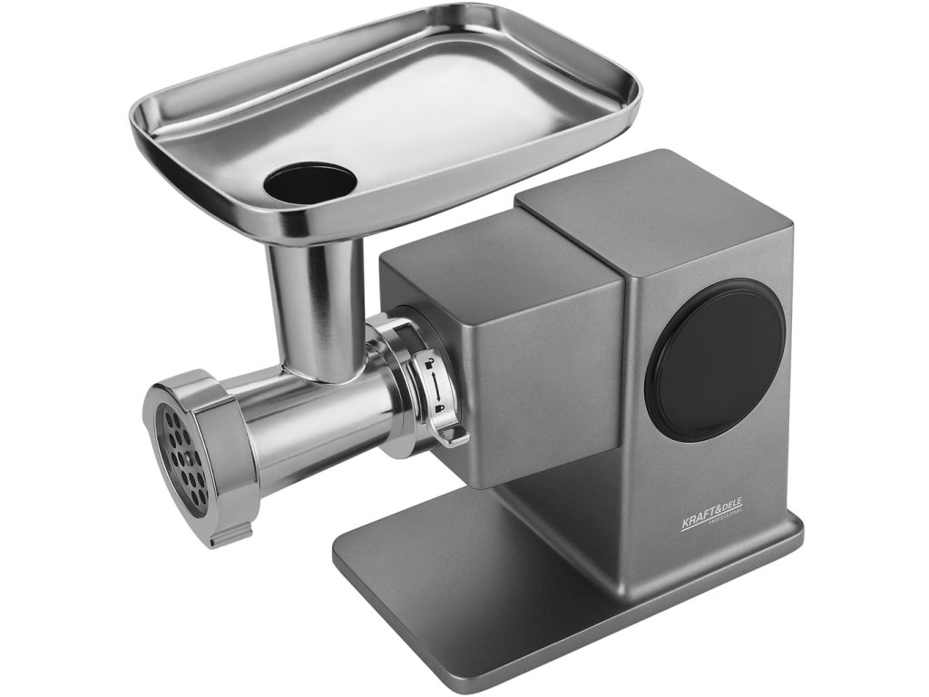 Výkonný mlýnek na maso 2500W s dotykovým ovládáním a planetárním systémem pro rovnoměrné mletí. Včetně příslušenství pro strouhání, výrobu uzenin a cukroví.