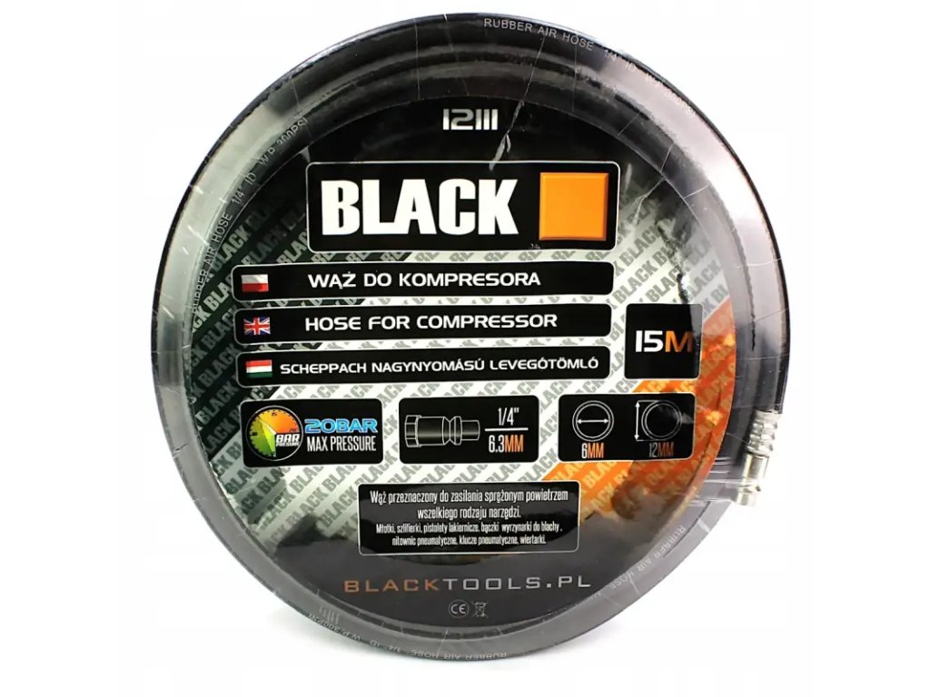 Pneumatická hadice s kovovou rychlospojkou 15m 20bar Black Tool