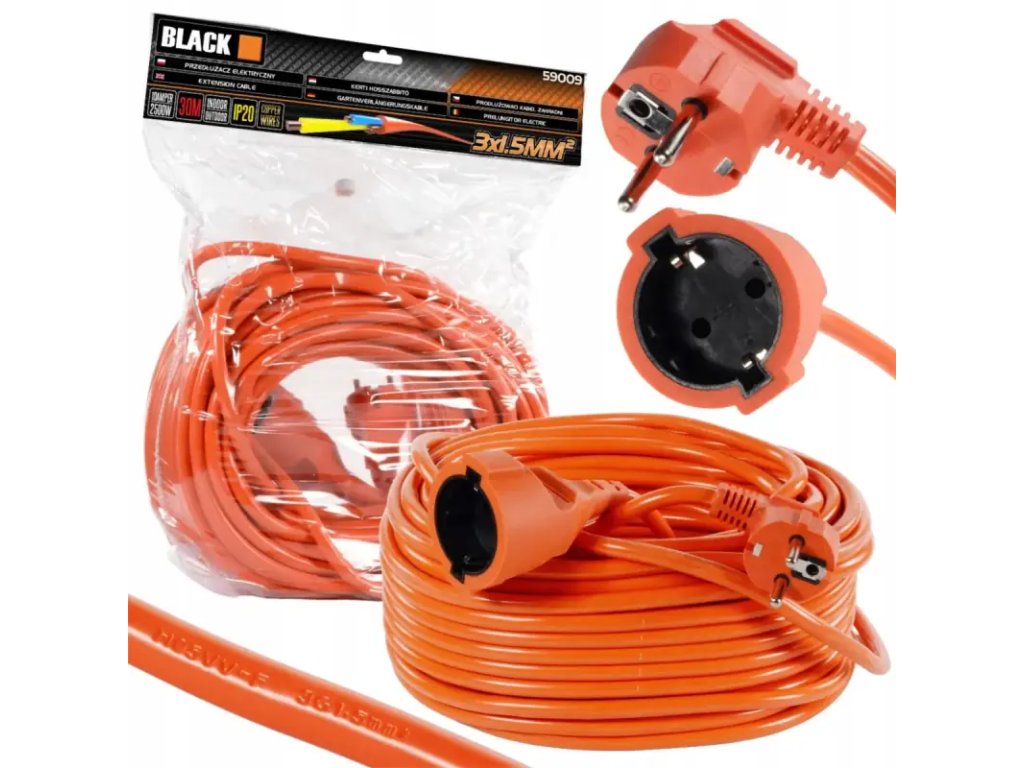 30 metrový prodlužovací kabel pro pohodlné a bezpečné napájení elektrických zařízení na větší vzdálenosti.