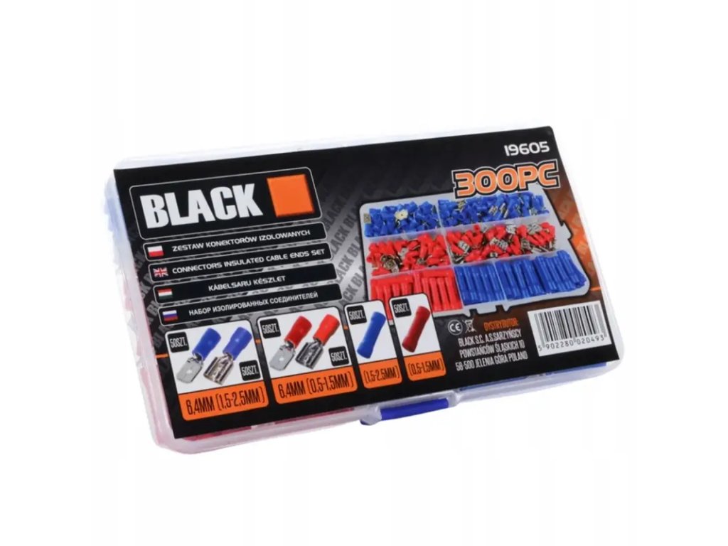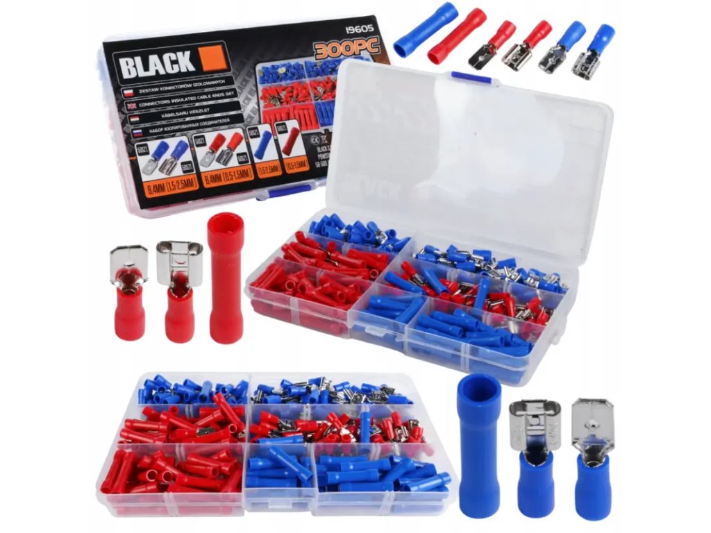 Sada izolovaných kabelových koncovek a konektorů 300ks Black Tool