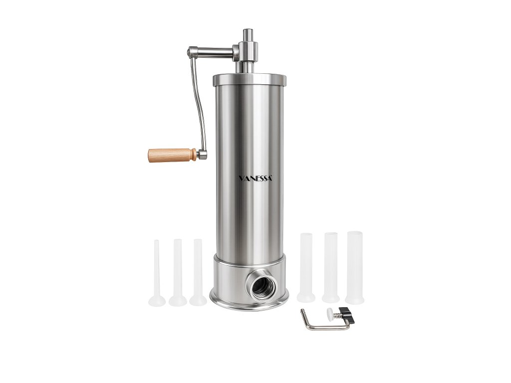Popis: Model Vanessa je navržen pro pohodlné plnění jitrnic, klobás, jelit a dalších uzenin. Svislý tubus o průměru 17 cm a délce 41 cm pojme až 6 kg mleté směsi. Díky lehkému a kompaktnímu provedení se vejde i na menší pracovní plochy.