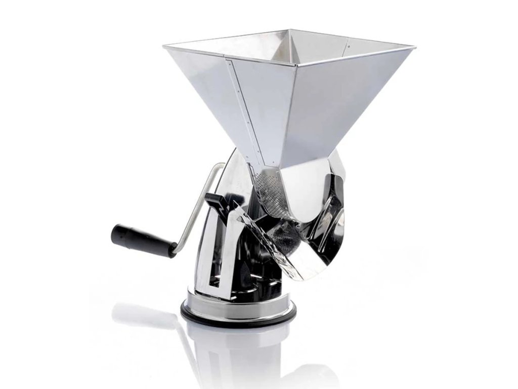 Nerezový pasírovač na rajčata Super Gulliver s vakuovou přísavkou Ideální pro výrobu rajčatového protlaku, šťávy a ovocných moštů Snadno odděluje dužinu od slupky díky dvoum výpustím