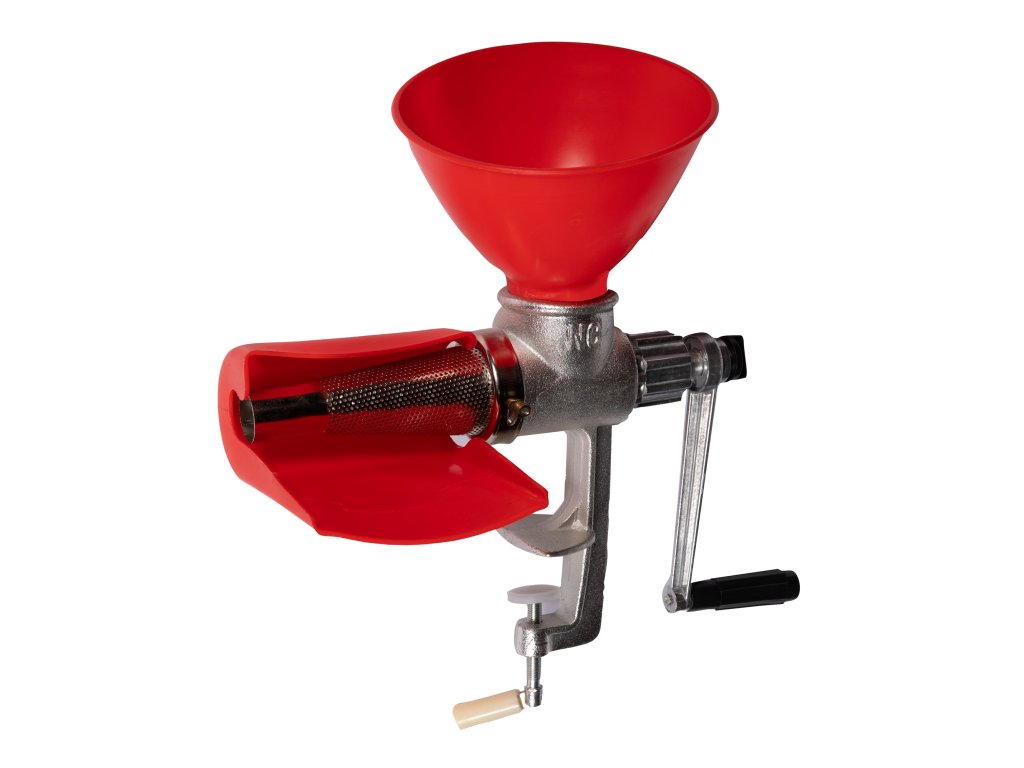 Ruční mlýnek na rajčata. Robustní litinové provedení s vyměnitelným sítkem pro domácí výrobu šťáv, omáček, pyré i džemů Ideální společník pro letní zavařovací sezónu – odolá desítkám sezón