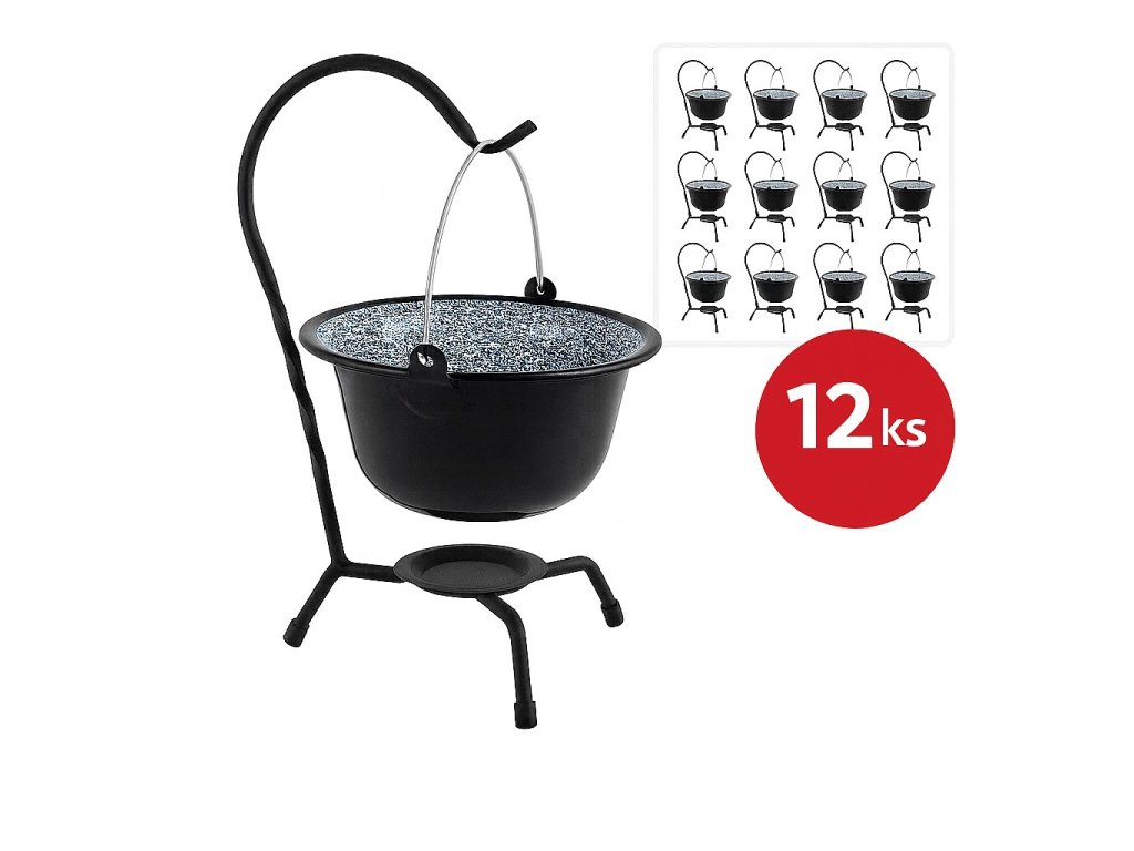 Servírovací malý kotlík smaltovaný se stojanem 0,8L černý 12ks